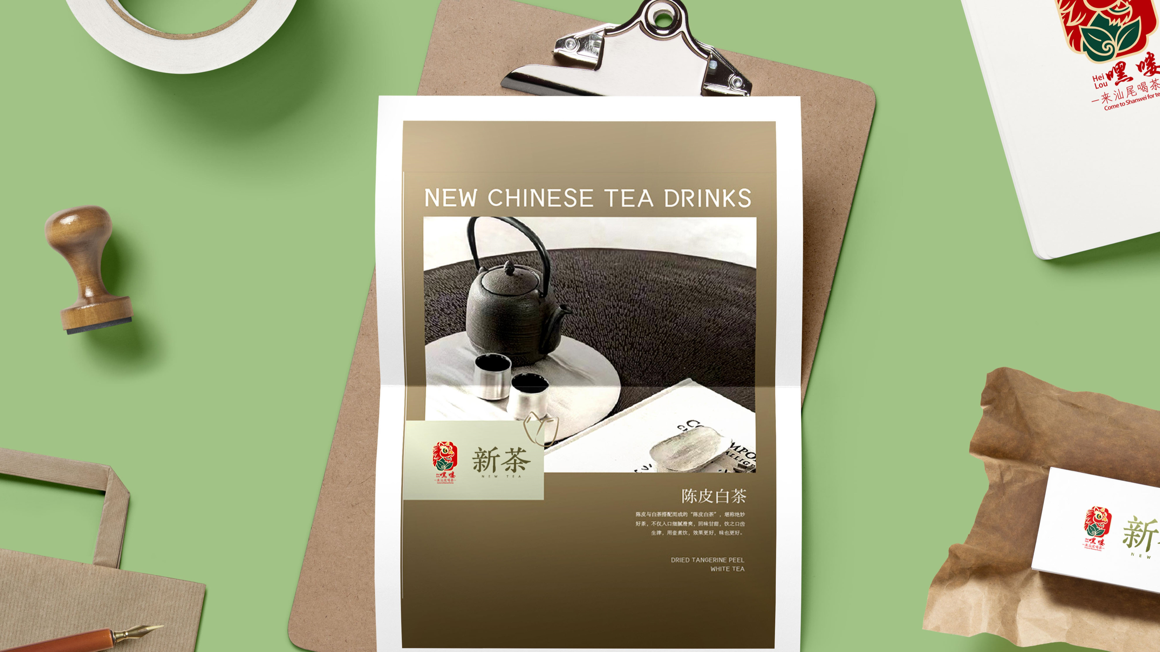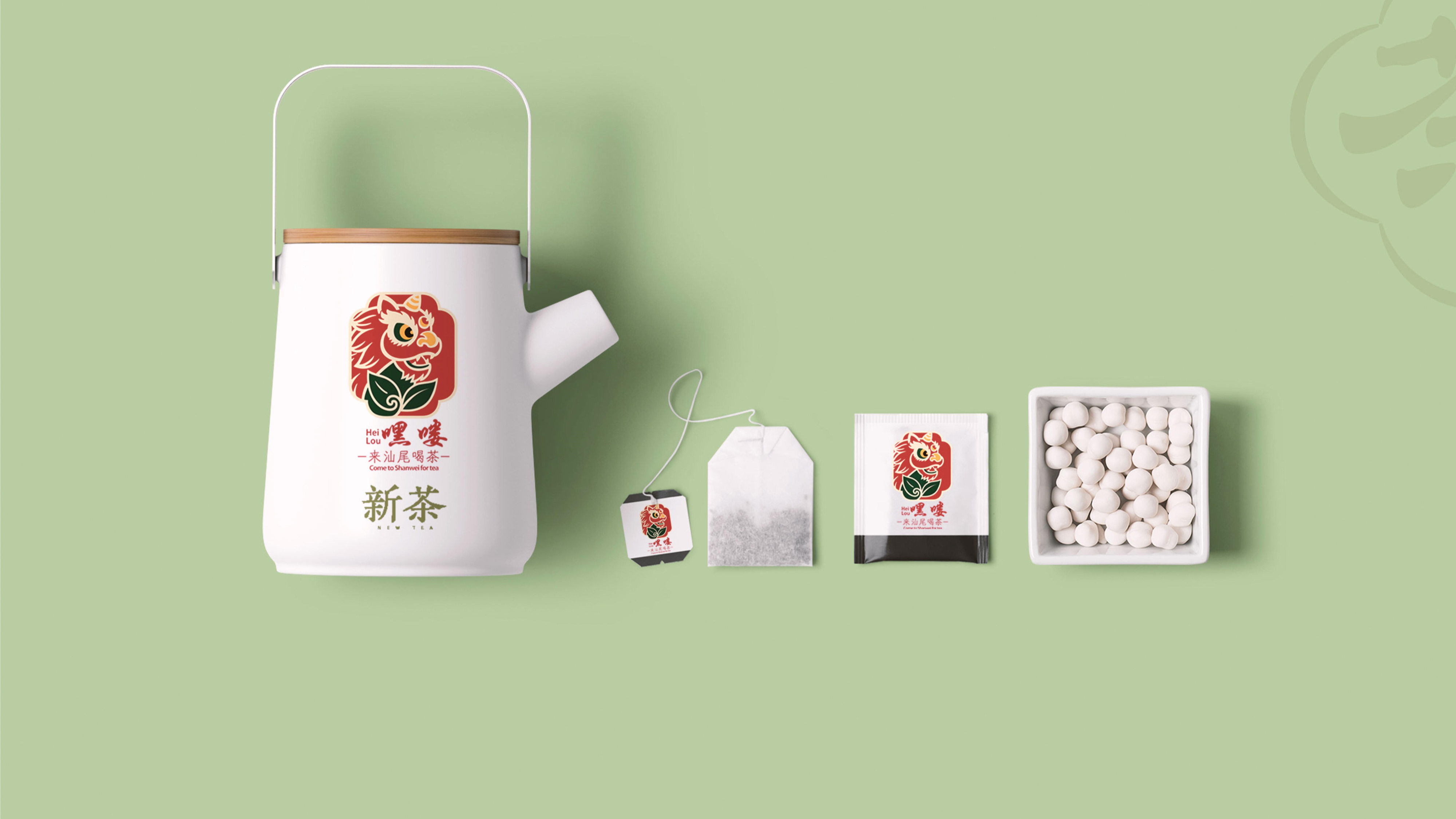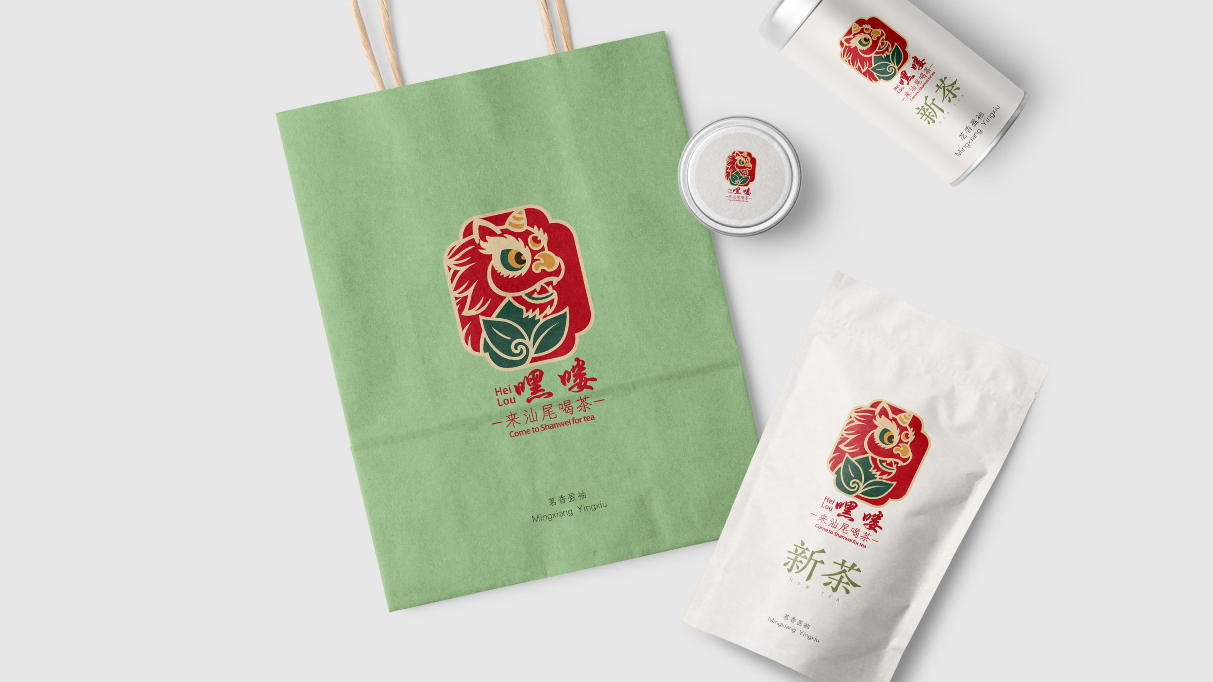 项目背景:"嘿喽茶饮"命名是以打招呼的口头语Hello的谐音进行创意,体现了名字的亲和性和易记性,便于呼唤和品牌的服务属性,LOGO设计以汕尾独特的虎狮形象进行创意,结合口号来汕尾喝茶进行创意,字体采用毛笔字,更有历史性和文化属性,