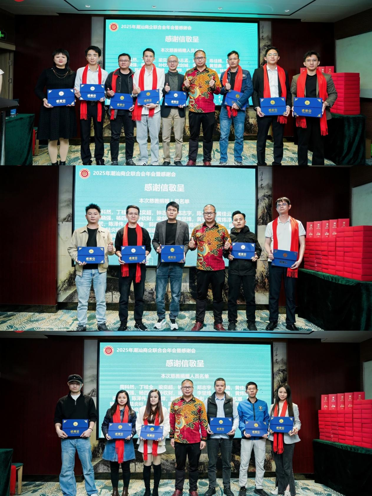 2025年12月20日,以“潮企共联、共创未来”为主题的潮汕商企联合会2025年会暨感谢会在广州文星酒店隆重举行。各地潮汕商会代表、各界嘉宾及潮企联成员来自港澳、潮汕、深圳、中山等城市近百人齐聚一堂,共叙乡情,共谋发展。本次年会通过主题分享、文化展示、公益致敬等多种形式,展现了新时代潮商的凝聚力与社会担当。